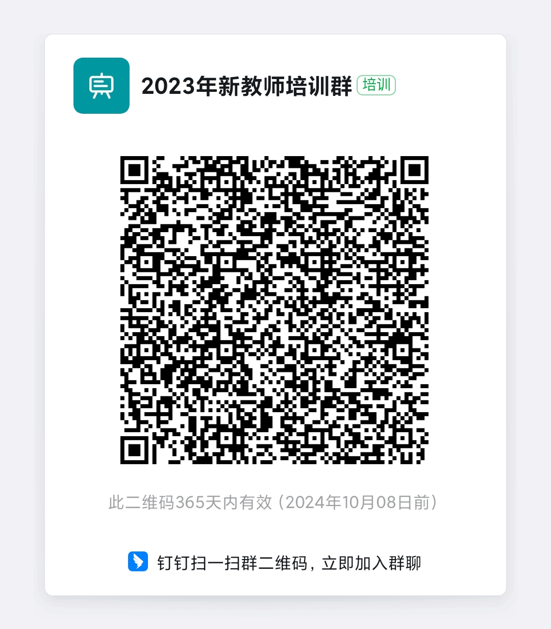 3.后续相关通知将在“2023年新教师培训群”(钉钉群)中进行,还没有进群的老师请扫描附件2中的二维码进群。