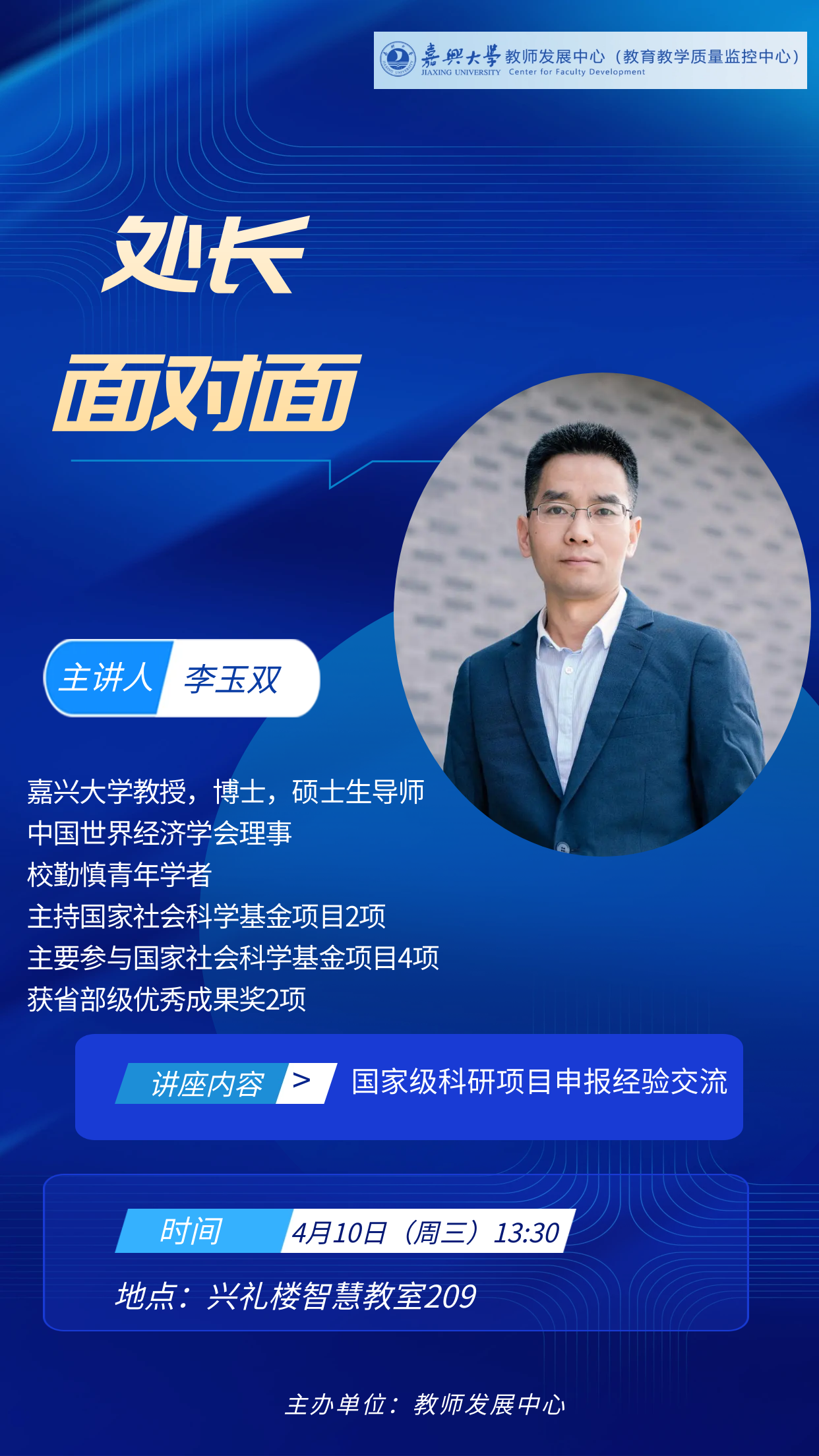 为鼓励教师积极参与项目申报,提高高级别科研项目申报书质量,教师发展中心特别邀请人文社科处李玉双副处长作“国家级科研项目申报经验交流”专题讲座,现将具体事项通知如下: