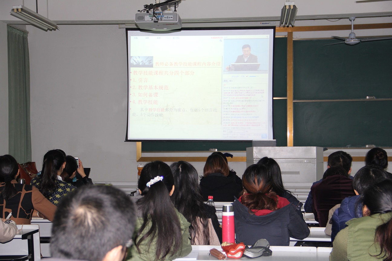 在为期两天的培训中,邢教授详细阐述了作为教师所必备的教学技能。具体包括教学基本规范、如何备课、教学技能等。在讲授教学基本规范的环境中,邢教授认为,教师讲课要讲究的是:“讲、解、做、写”,即:语言技能,讲授技能;解惑技能,思维技能;演示技能,操作技能;板书技能,写作技能。教学是我们的安身立命之本;是一项专业的技能,不是业余的技能。因此,教学技能必须进行规范的训练。教学的最高境界是,把难的东西讲的很容易,把复杂的东西讲的很简单。教学中要讲出关键性的几句话,不仅要讲出是什么?还要讲出为什么?不要失言,不要拖堂,教学要讲逻辑,教学要讲节奏。