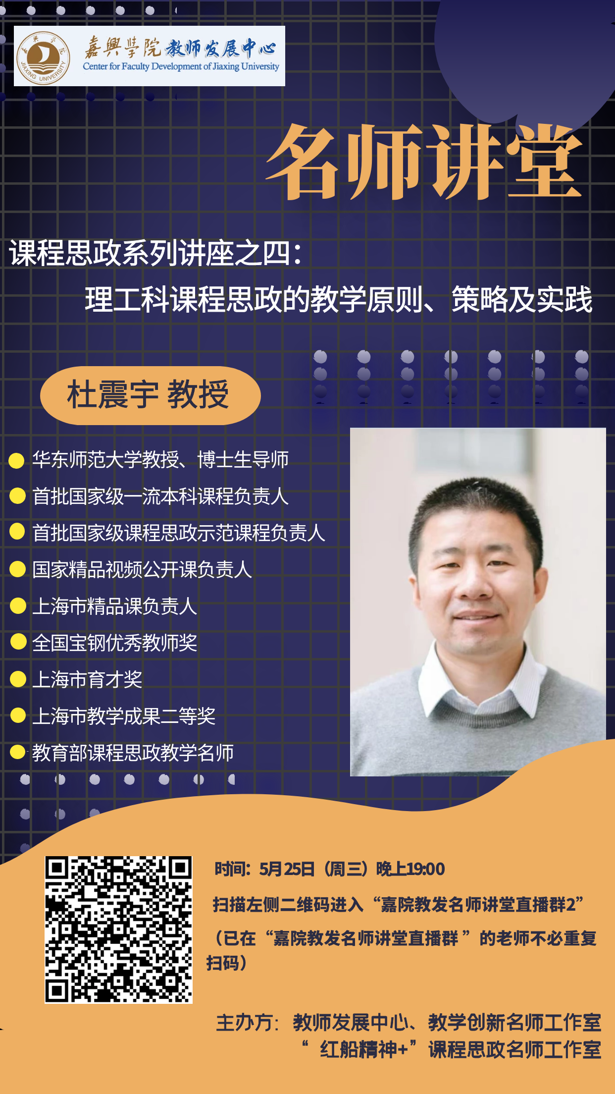 5月25日(周三)晚上19:00,嘉院教发名师讲堂直播群(详见海报)。