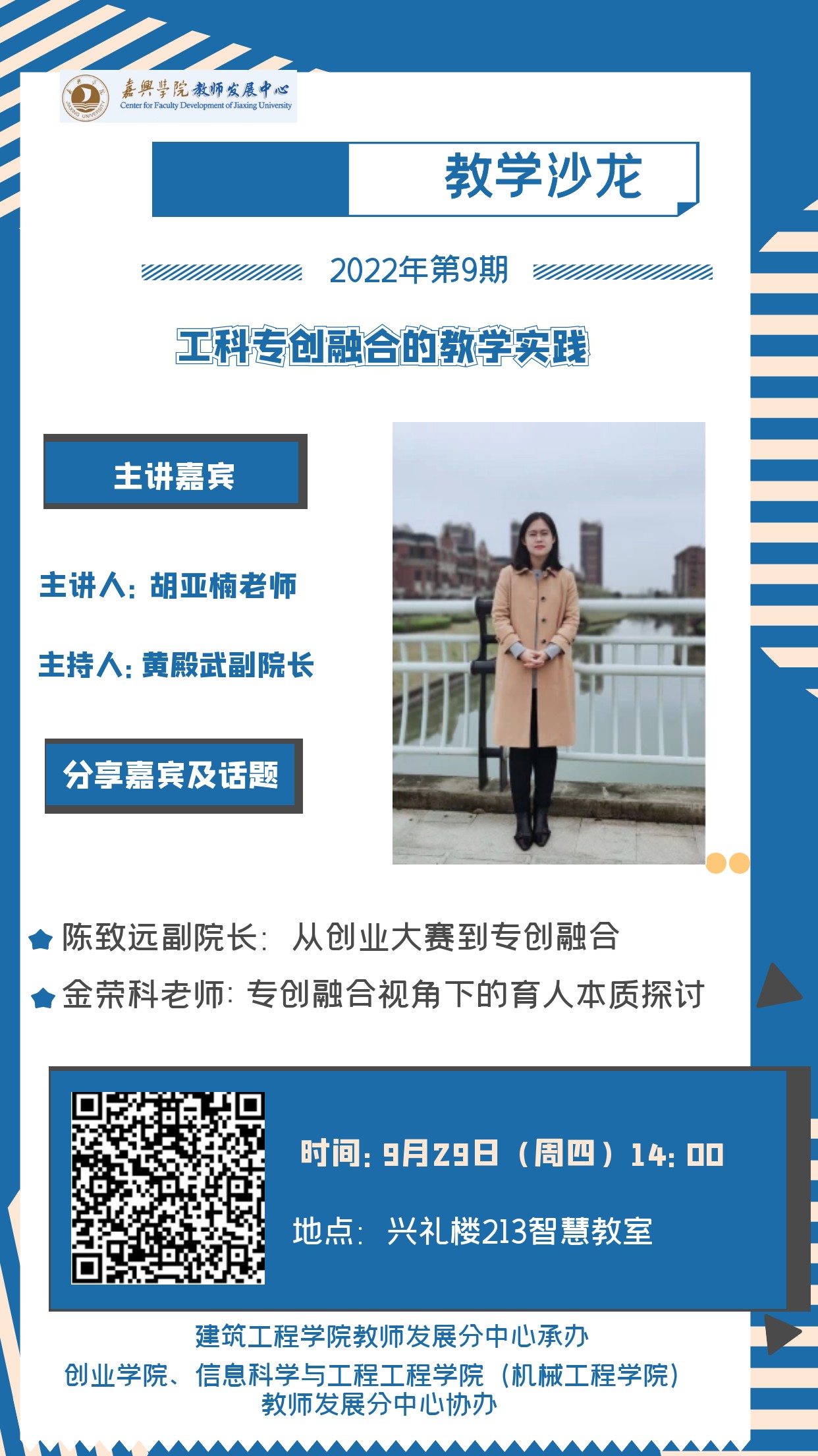 嘉兴学院2022年第九期教学沙龙活动即将启动,将由建筑工程学院教师发展分中心承办,创业学院、信息科学与工程学院(机械工程学院)教发分中心合作组织,现就有关事项通知如下: