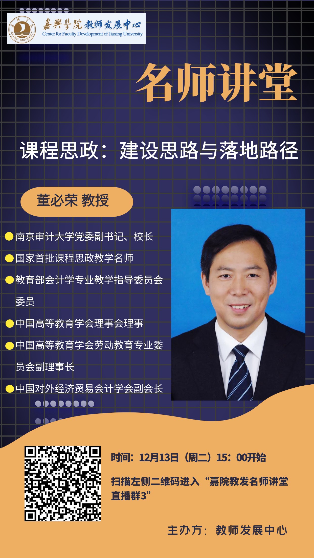 12.13(周二)15:00-16:30,嘉院教发名师讲堂直播群3(详见海报)。