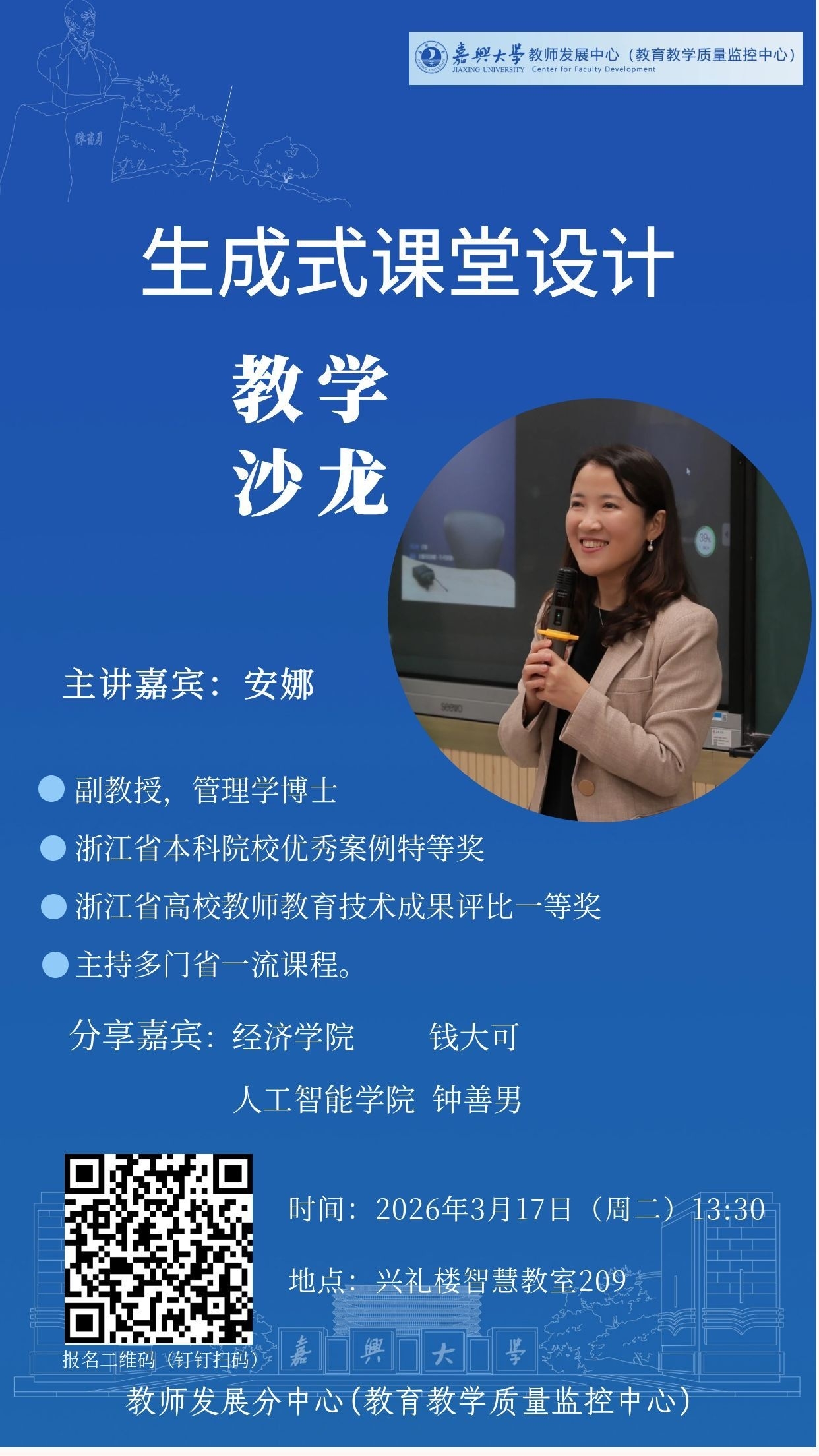 为了帮助大家探索教学新路径,解决实际教学中的痛点,打造高效、互动且富有创意的“生成式课堂”,学校教师发展中心举办“生成式课堂设计”教学沙龙,现就有关事项通知如下: