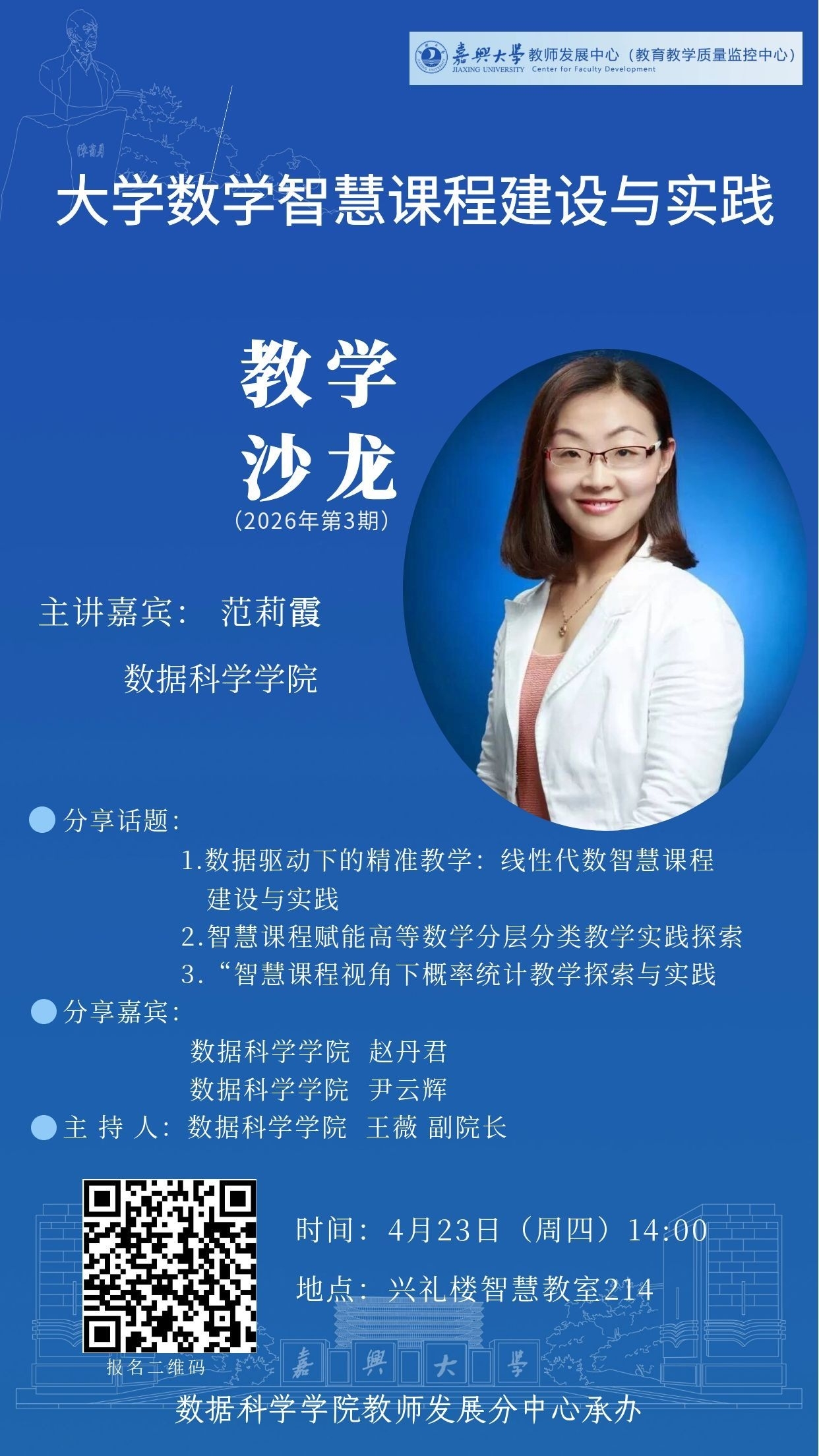 嘉兴大学2026年第三期教学沙龙活动即将启动,将由数据科学学院教师发展分中心承办,人工智能学院和商学院协办,现就有关事项通知如下: