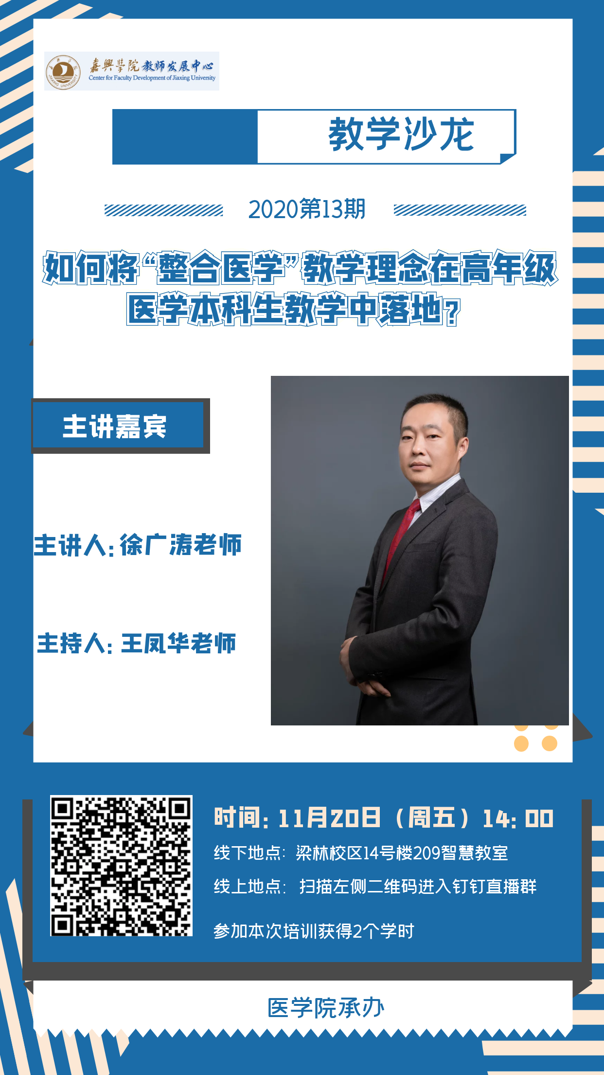 嘉兴学院2020年第十三期教学沙龙活动即将启动,将由医学院承办,现就本期活动的有关事项通知如下: