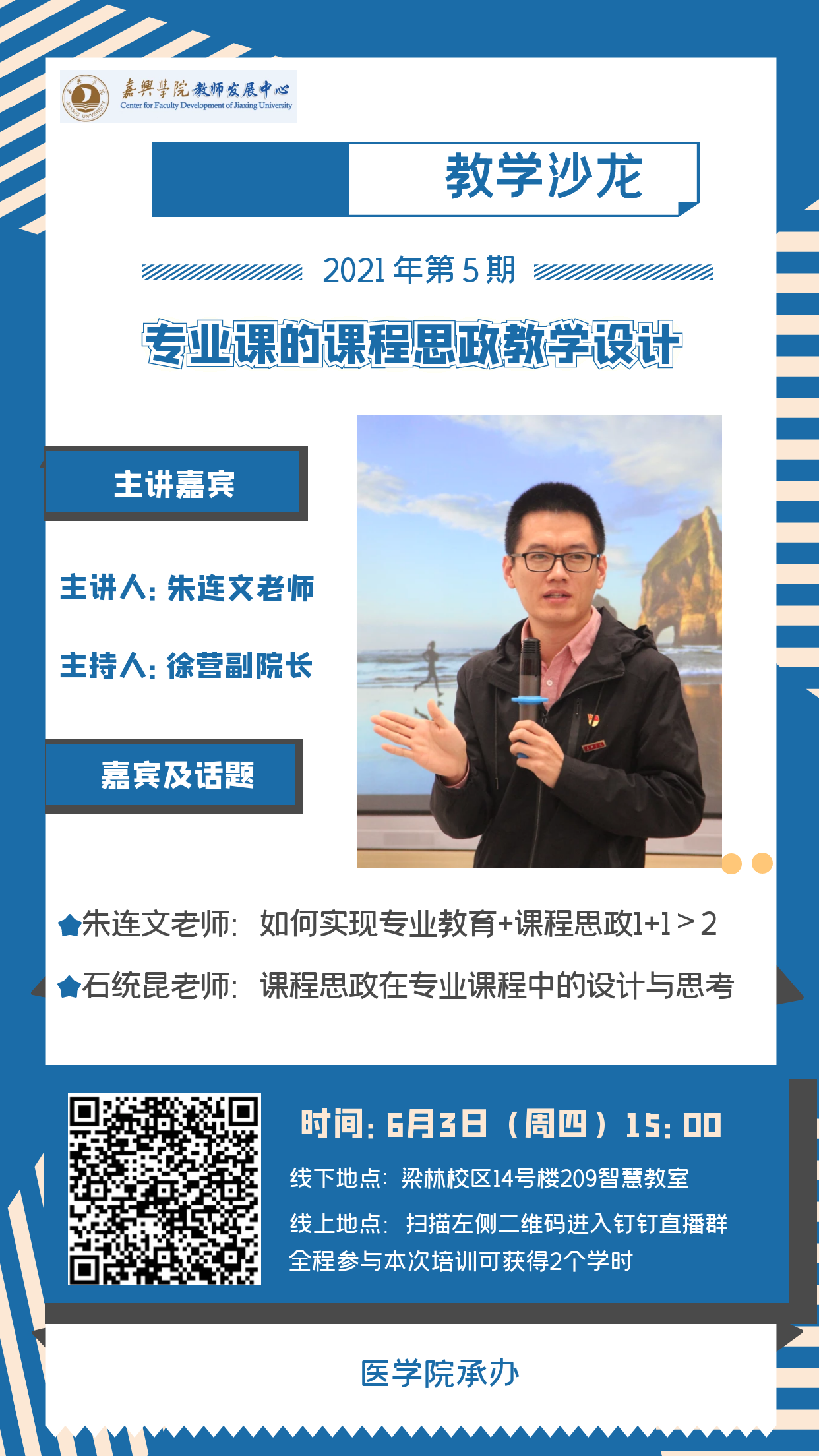 嘉兴学院2021年第五期教学沙龙活动即将启动,将由医学院承办,生物与化学工程学院合作组织,现就本期活动的有关事项通知如下: